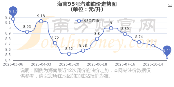 海南汽油、柴油11月8日每升最新價格為:調(diào)整時間為10月28日,92號汽油為7.96元,降了0.21元;95號汽油為8.44元,降了0.23元;89號汽油為7.35元,降了0.19;0號柴油為6.56元,降了0.22元。