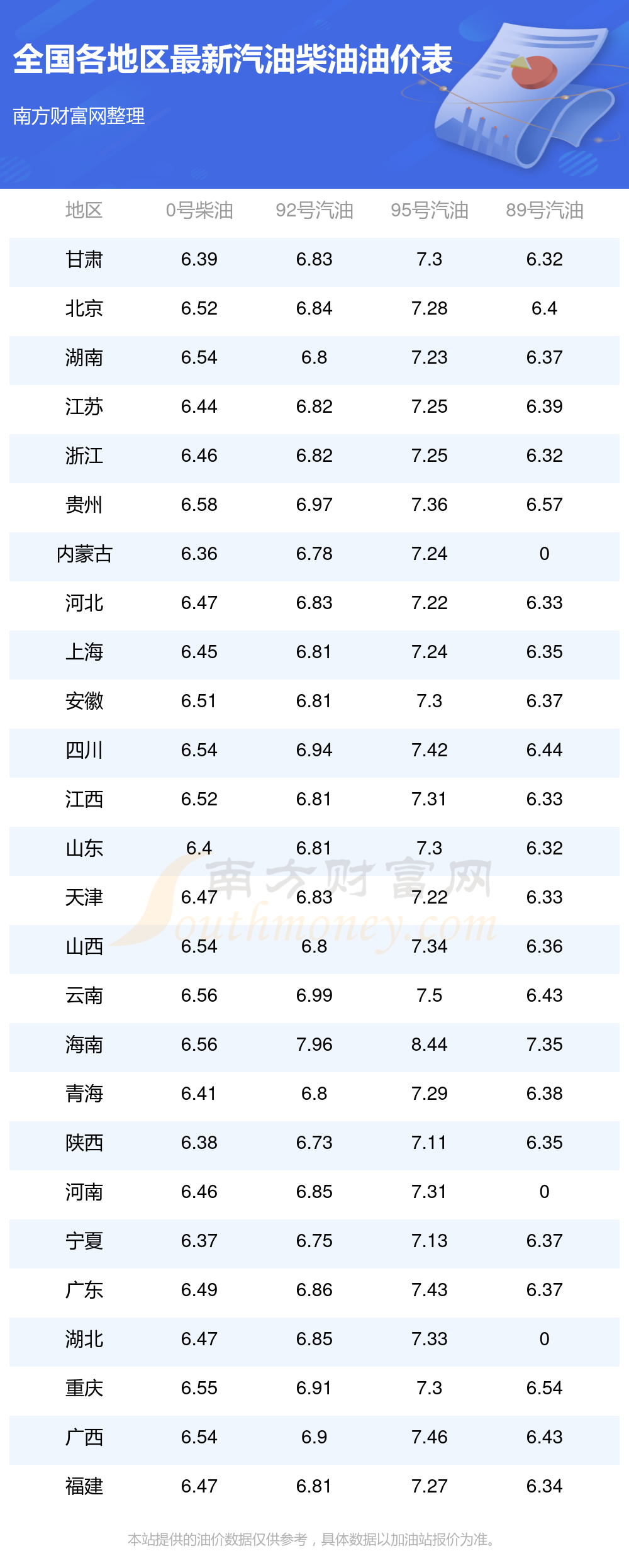 以上油價信息是當(dāng)前市場上最新油價信息,油價數(shù)據(jù)僅供參考,實際在售油價可能有小幅偏差,請以您所在地區(qū)的加油站實際售價為準(zhǔn)。