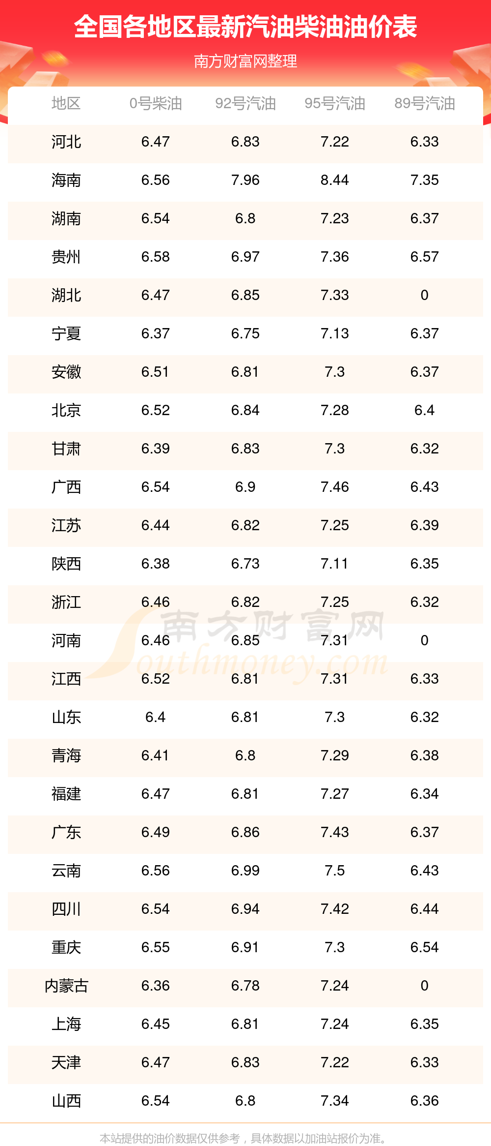 2025年11月8日全國油價(jià)調(diào)整及最新汽油價(jià)格表