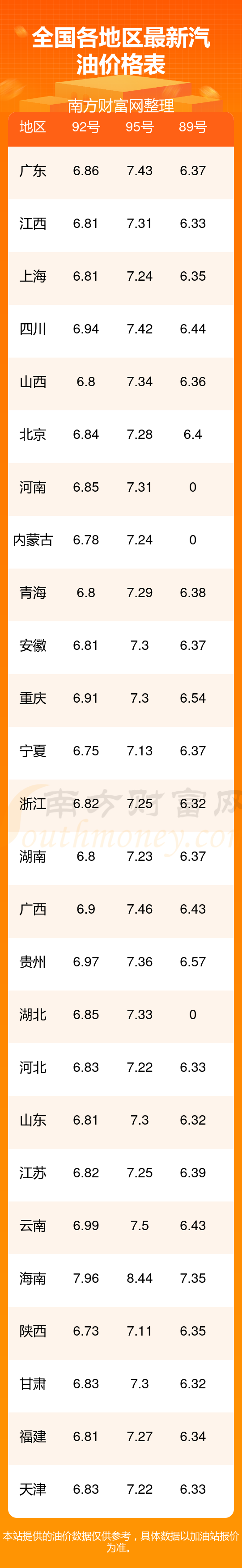 2025年11月8日全國油價調(diào)整及最新汽油價格表