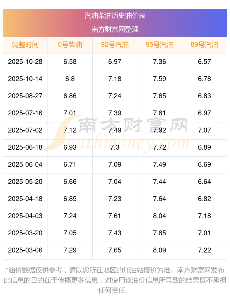 黔西南92號汽油11月8日的最新價格為6.97元/升,調(diào)整時間為10月28日,相對上次調(diào)整降了0.21元。下一輪油價調(diào)整時間11月10日24時,距離現(xiàn)在還有2.24天。