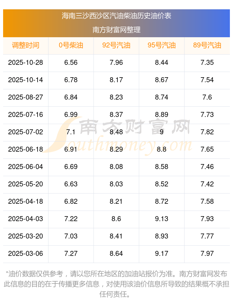 2025年海南三沙西沙區(qū)油價(jià)調(diào)整時(shí)間表