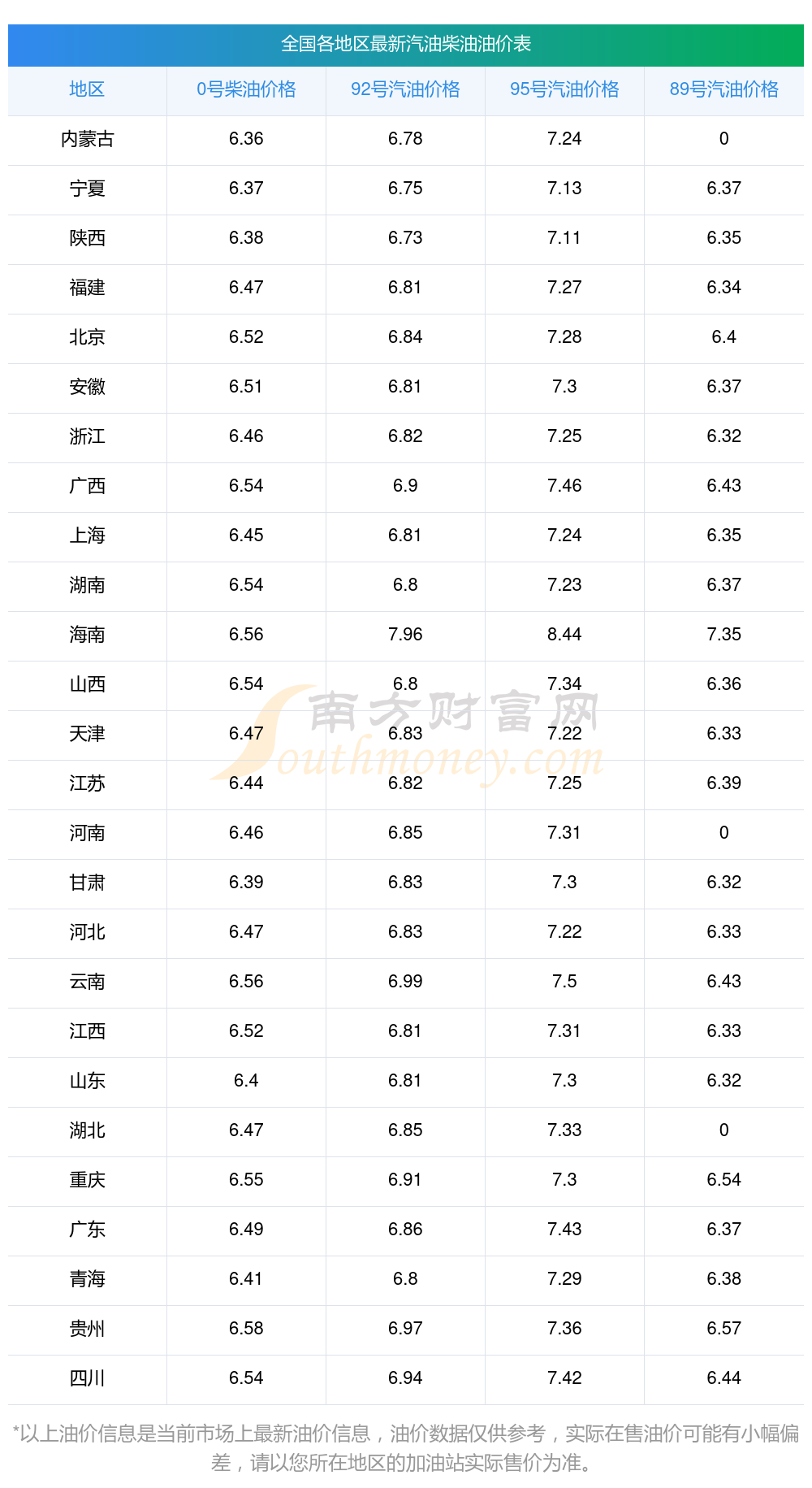 全國95號汽油最新平均價格為:7元每升,其中,最低為陜西,價格為7.11元/升,最高為海南,價格為8.44元/升。