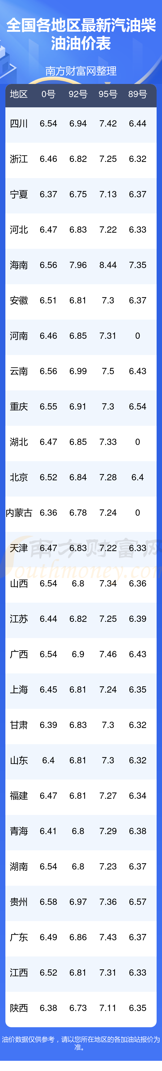 以上油價信息是當前市場上最新油價信息,油價數(shù)據(jù)僅供參考,實際在售油價可能有小幅偏差,請以您所在地區(qū)的加油站實際售價為準。
