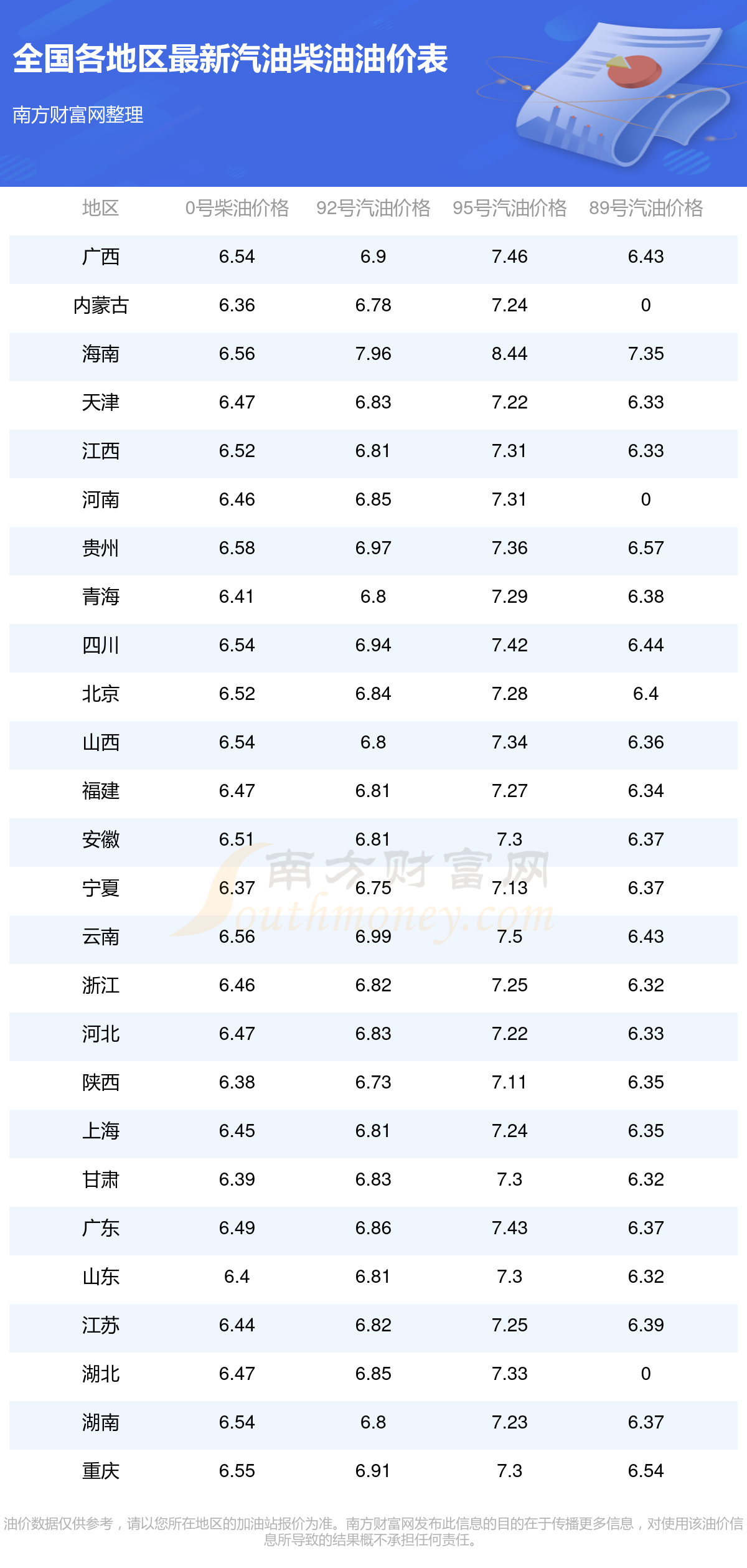 2025年11月8日全國油價調(diào)整及最新汽油價格表