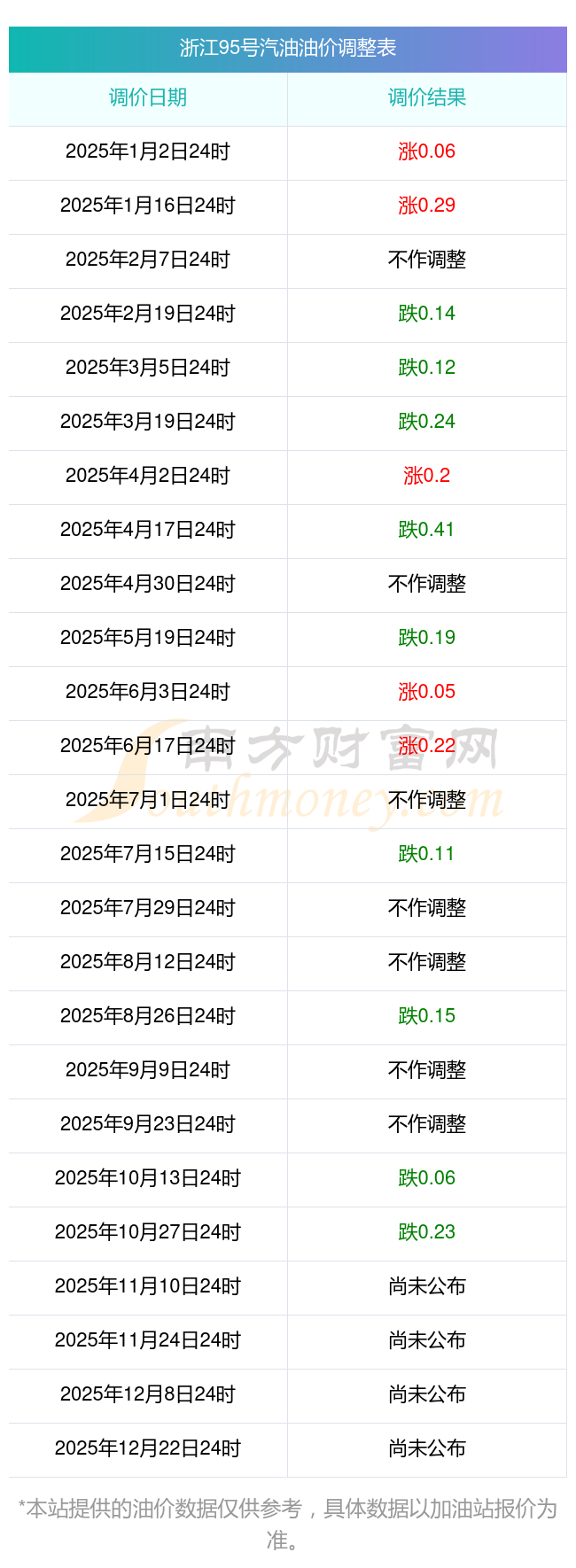 杭州2025年油價調(diào)整時間及最新價格表
