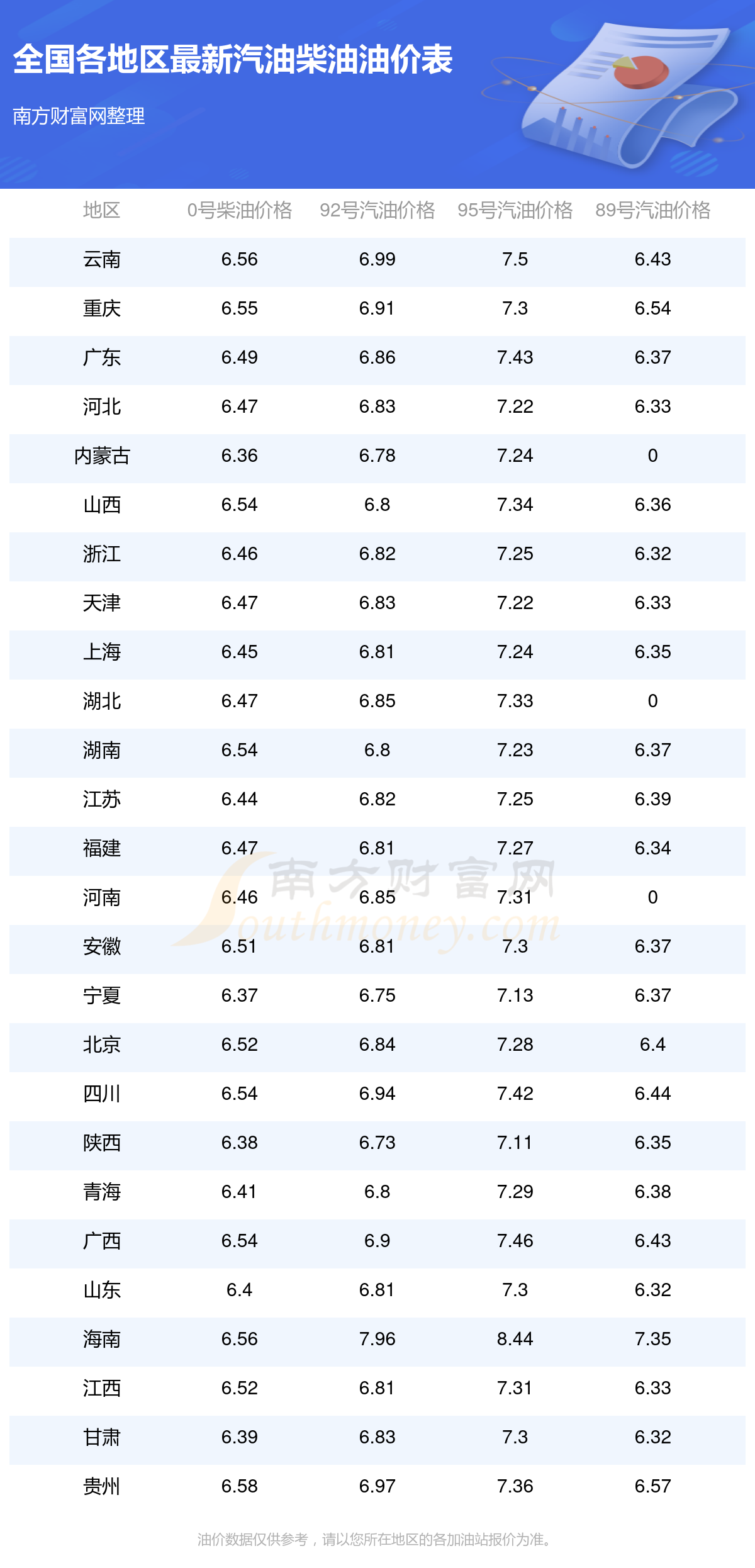 油價調(diào)整最新消息:銀川靈武市汽油、柴油11月8日每升的價格為:92號汽油6.75元;95號汽油7.13元;89號汽油6.37元;0號柴油6.37元,本次油價調(diào)整時間是10月28日。下一輪油價調(diào)整時間11月10日24時。