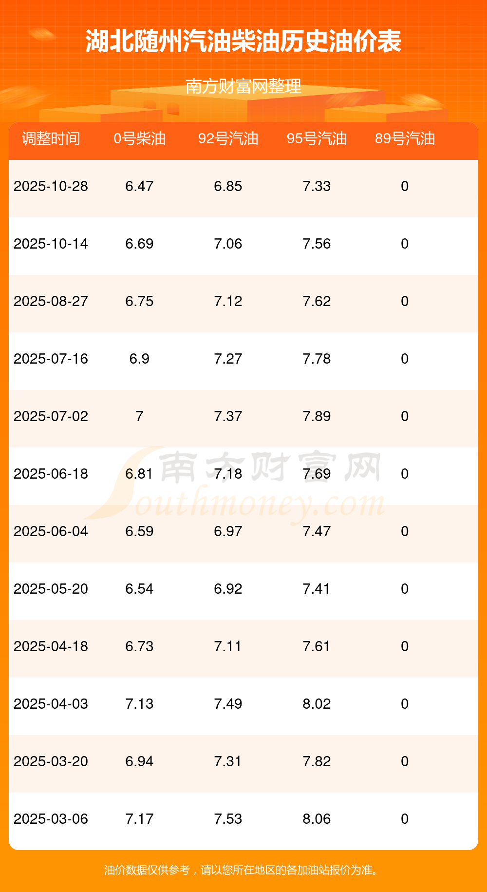 2025年汽油柴油歷史油價調(diào)整一覽表