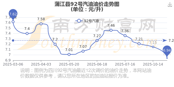 11月8日蒲江縣汽油柴最新油價是多少?具體每升為:10月28日調(diào)整后,92號汽油為6.94元,減了0.21元,減幅達2.94%;95號汽油為7.42元,減了0.23元,減幅達3.01%;89號汽油為6.44元,減了0.2元,減幅達3.01%;0號柴油為6.54元,減了0.22元,減幅達3.25%。