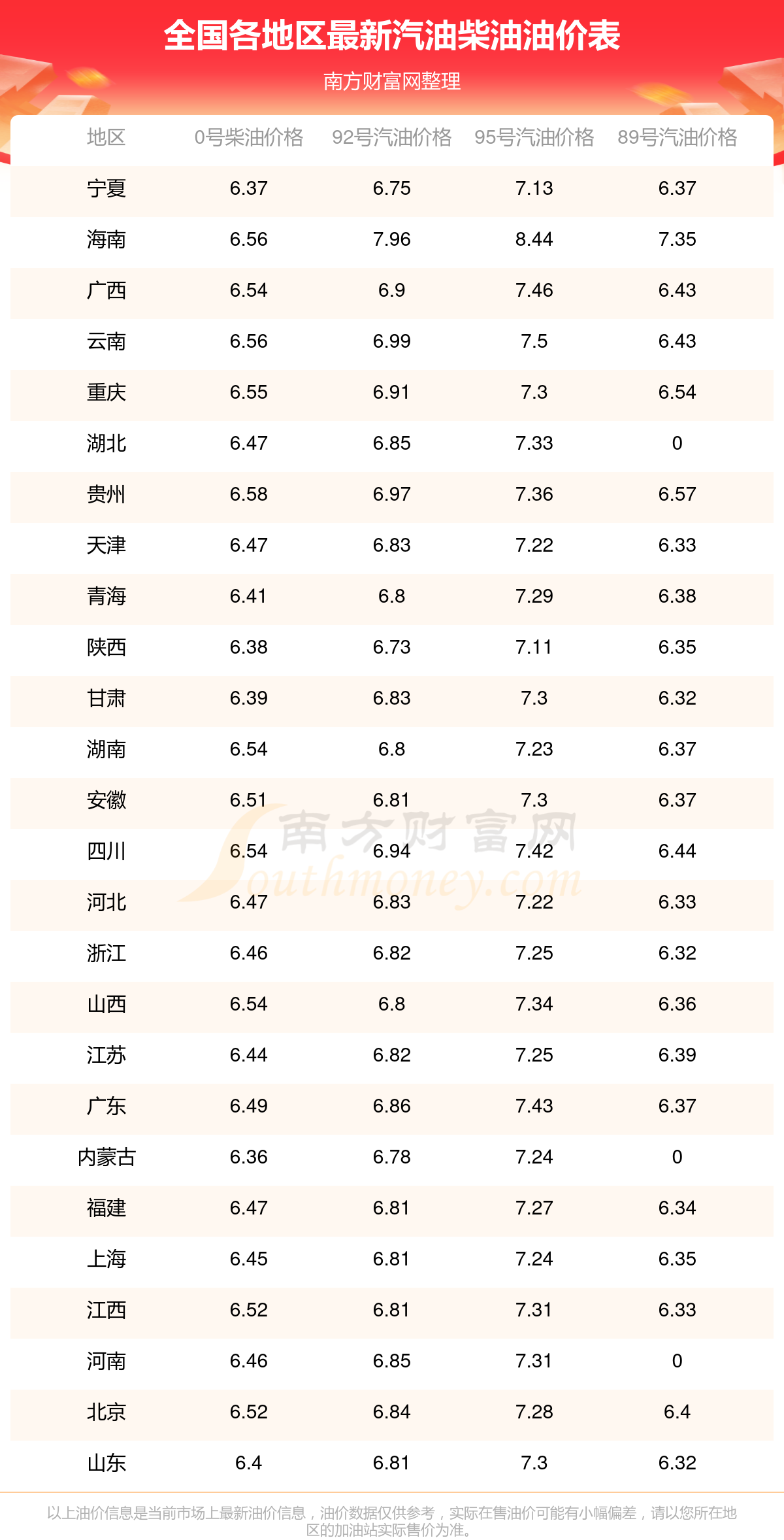油價(jià)數(shù)據(jù)僅供參考,請以您所在地區(qū)的加油站報(bào)價(jià)為準(zhǔn)。南方財(cái)富網(wǎng)發(fā)布此信息的目的在于傳播更多信息,對使用該油價(jià)信息所導(dǎo)致的結(jié)果概不承擔(dān)任何責(zé)任。