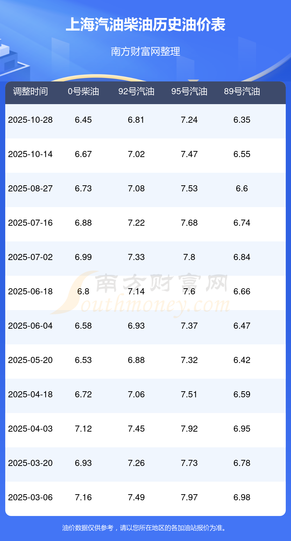 (11月8日)92、95號(hào)汽油價(jià)格一覽表