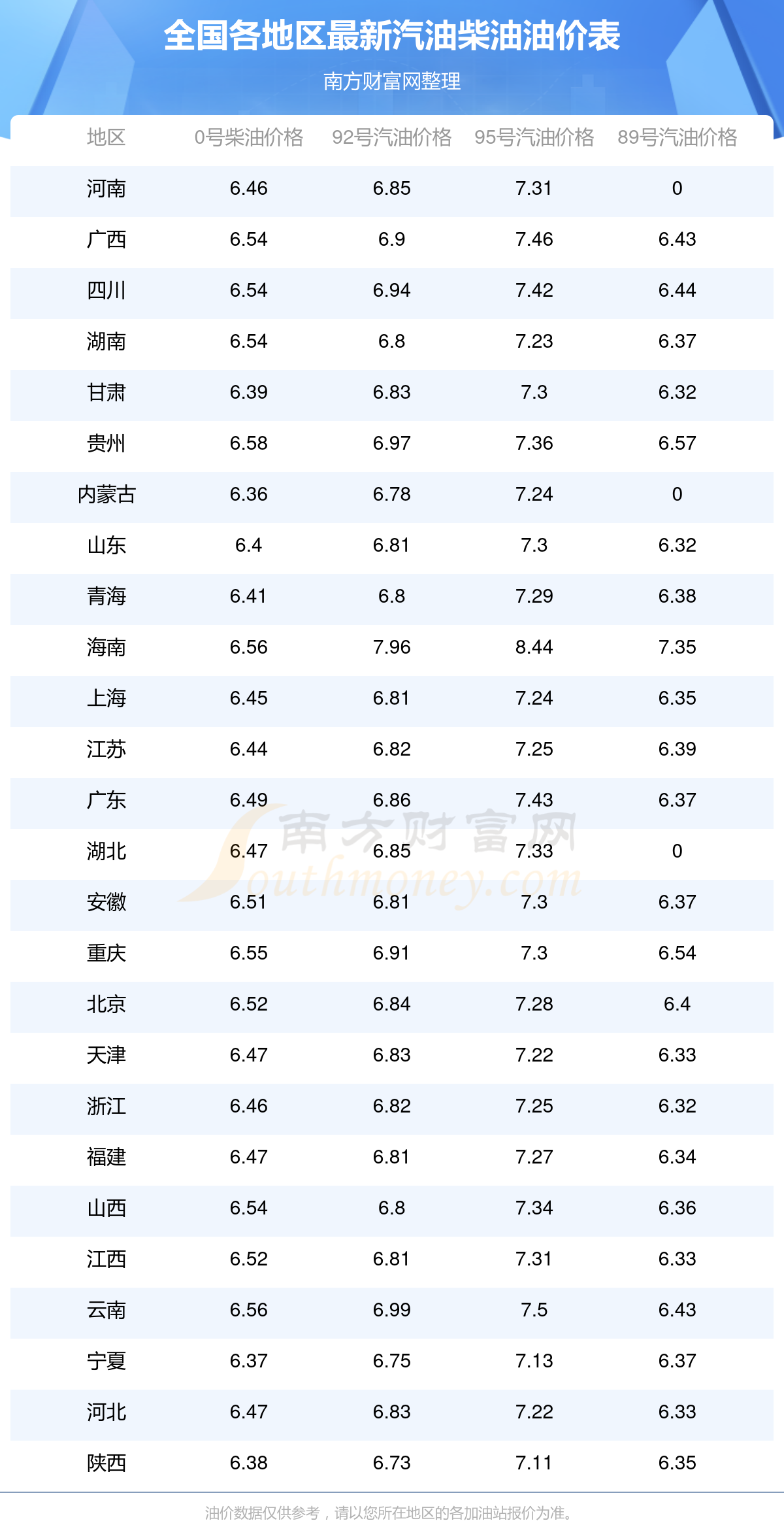 (11月8日)全國油價一覽表