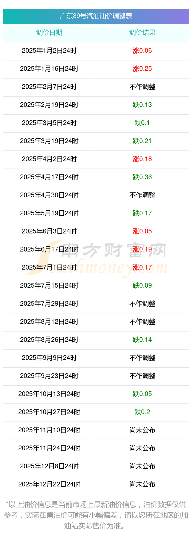 東莞汽油、柴油11月8日每升的價格為:92號汽油6.86元;95號汽油7.43元;89號汽油6.37元;0號柴油6.49元,本次油價調(diào)整時間是10月28日。東莞下一輪油價調(diào)整時間11月10日24時,距離現(xiàn)在還有2.1天。