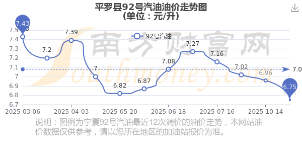 平羅縣汽油、柴油11月8日每升最新價格為:92號汽油為6.75元;95號汽油為7.13元;89號汽油為6.37元;0號柴油為6.37元,調(diào)整時間為10月28日。