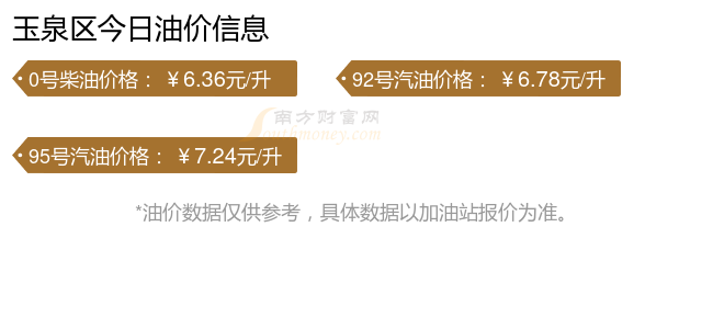 玉泉區(qū)汽油、柴油11月8日每升的價(jià)格為(本輪油價(jià)調(diào)整時(shí)間為10月28日):92號汽油6.78元;95號汽油7.24元;0號柴油6.36元。