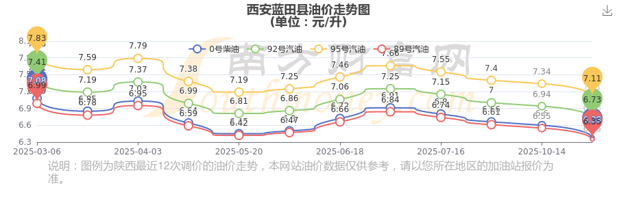 西安藍田縣11月8日0號柴油歷史油價調(diào)整走勢圖