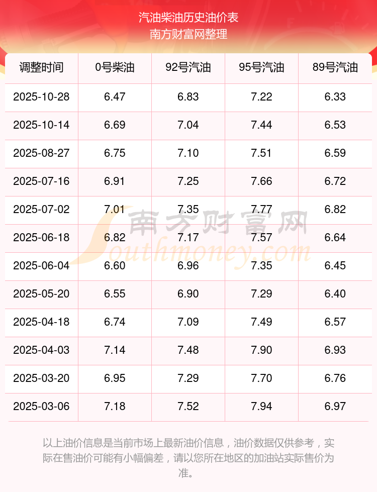 2025年92號(hào)汽油價(jià)格一覽表