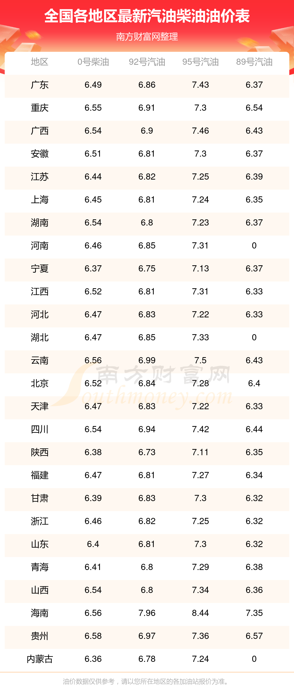 2025年11月9日全國各地汽油價格調(diào)整時間及價格一覽表