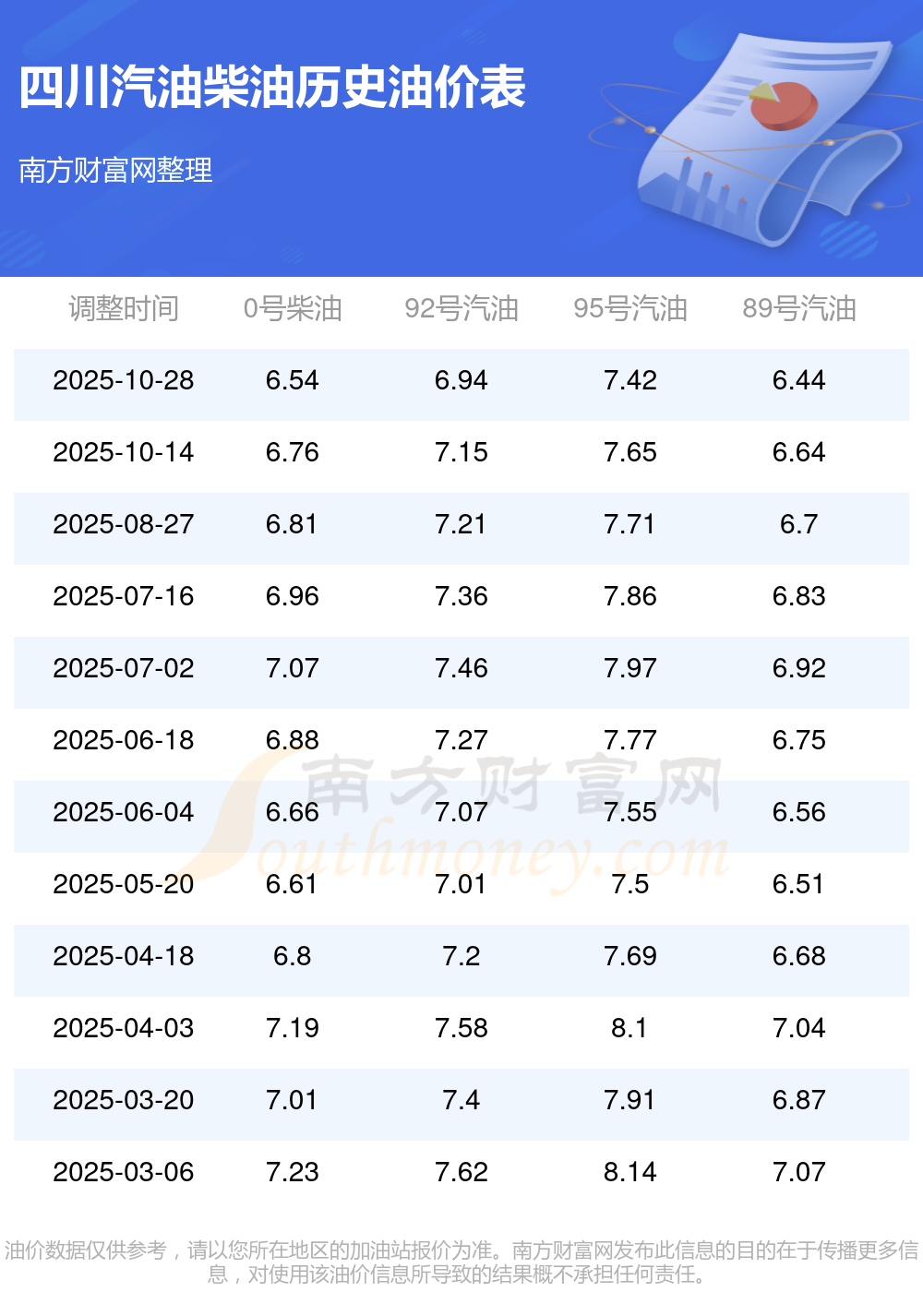 四川0號(hào)柴油油價(jià)調(diào)整表