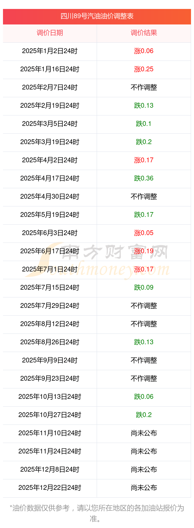 2025年成都汽油價格調(diào)整時間及價格表