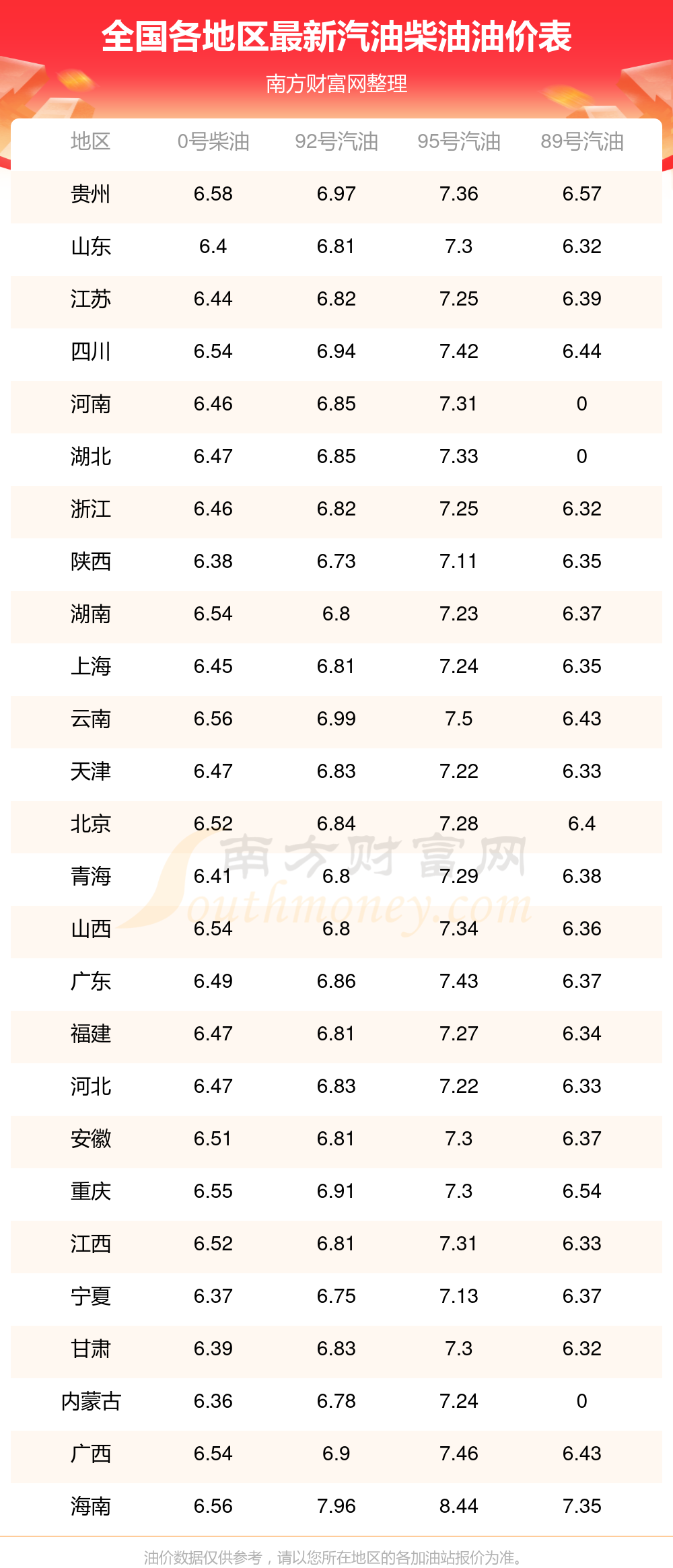 2025年11月9日全國油價調(diào)整及最新汽油價格表