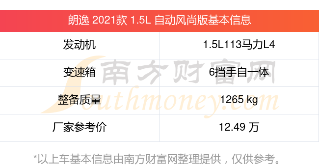 朗逸 2021款 1.5L 自動(dòng)風(fēng)尚版動(dòng)力上搭載的是一臺(tái)1.5L113馬力L4自然吸氣發(fā)動(dòng)機(jī),匹配6擋手自一體自動(dòng)檔變速箱,燃料形式為汽油,常規(guī)整備質(zhì)量1265kg,廠家參考價(jià)12.49萬元。