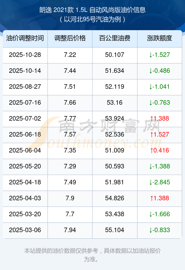 按照10月28日95號(hào)汽油最新調(diào)整價(jià)格7.22元/升來計(jì)算(以河北為例),該車型百公里平均油費(fèi)為50.107元,按照上一輪10月14日調(diào)整價(jià)格7.44元/升來計(jì)算,百公里平均油費(fèi)為51.634元,對(duì)比上一輪少花1.527元,下一輪油價(jià)調(diào)整時(shí)間為11月10日24時(shí)。