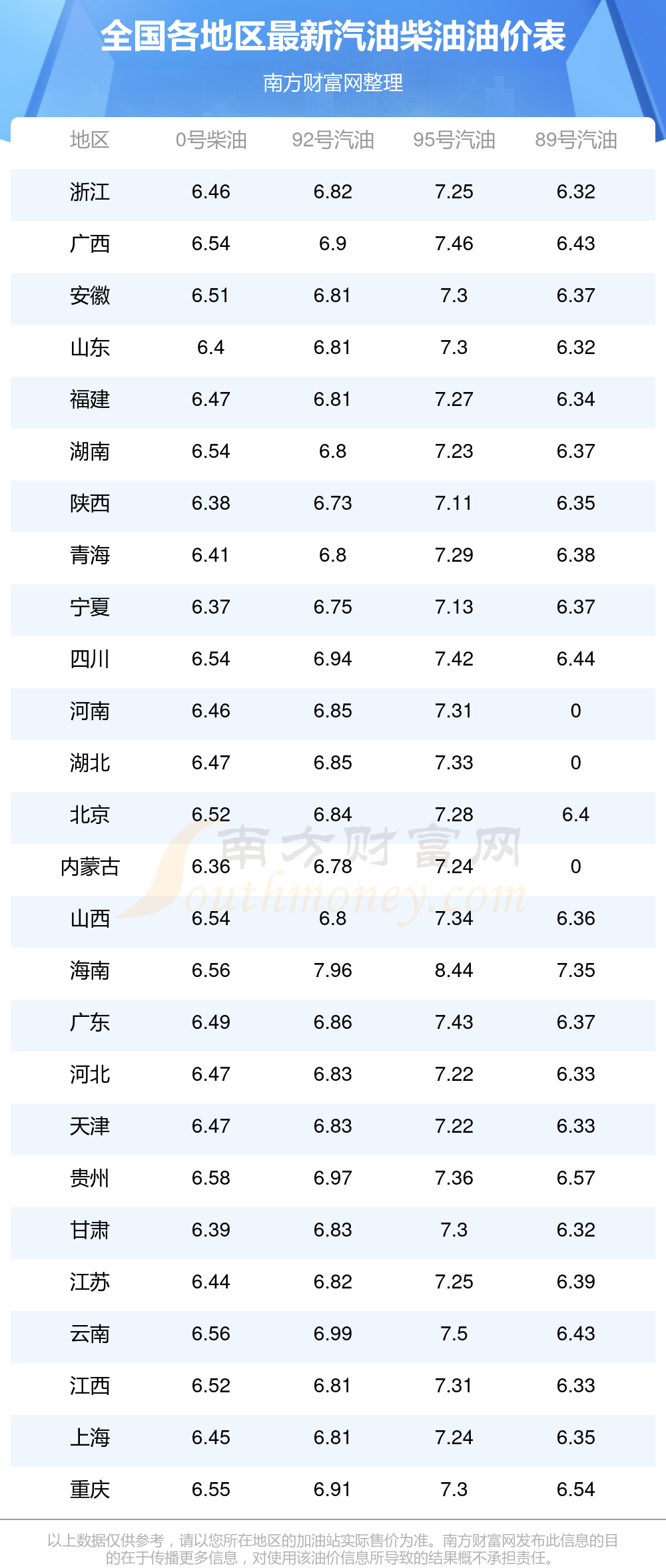 油價數(shù)據(jù)僅供參考,請以您所在地區(qū)的各加油站報價為準(zhǔn)。