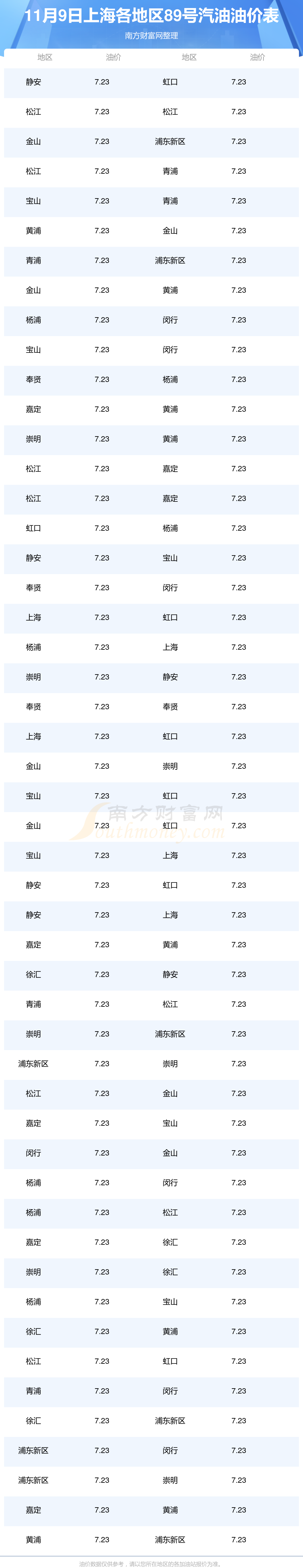 11月9日,上海89號汽油的價格是6.35元每升,本次的調(diào)整時間為10月28日,對比上次的調(diào)整下降了0.2元,下降3.053%,11月10日24時為下一輪油價調(diào)整時間,還有1.63天。