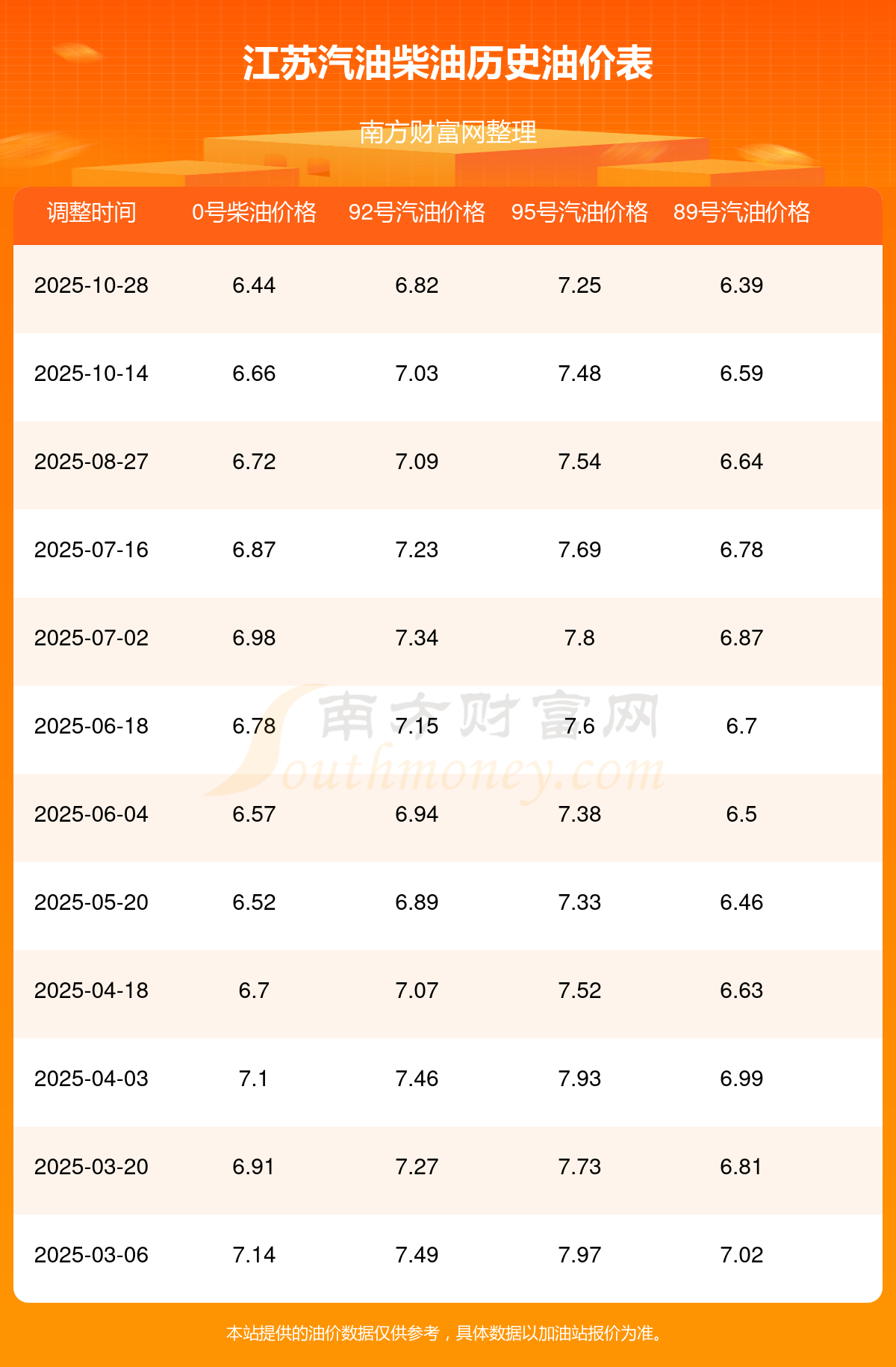 11月9日,江蘇89號(hào)汽油的價(jià)格是6.39元每升,本次的調(diào)整時(shí)間為10月28日,對(duì)比上次的調(diào)整減了0.2元,減3.035%,11月10日24時(shí)為下一輪油價(jià)調(diào)整時(shí)間,還有1.62天。
