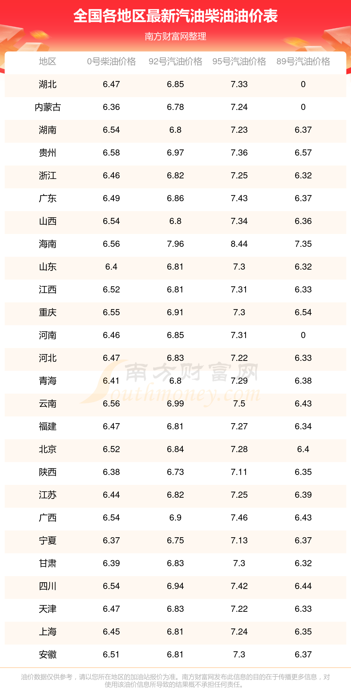 油價數(shù)據(jù)僅供參考,請以您所在地區(qū)的加油站報價為準(zhǔn)。南方財富網(wǎng)發(fā)布此信息的目的在于傳播更多信息,對使用該油價信息所導(dǎo)致的結(jié)果概不承擔(dān)任何責(zé)任。