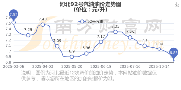 11月9日,河北92號(hào)汽油的價(jià)格是6.83元每升,本次的調(diào)整時(shí)間為10月28日,對(duì)比上次的調(diào)整減了0.21元,減2.983%,11月10日24時(shí)為下一輪油價(jià)調(diào)整時(shí)間,還有1.6天。