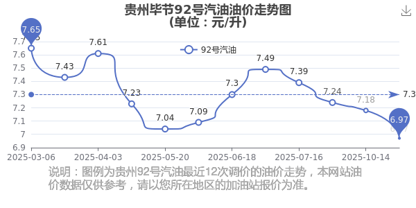 2025年貴州畢節(jié)汽油價(jià)格歷史走勢圖