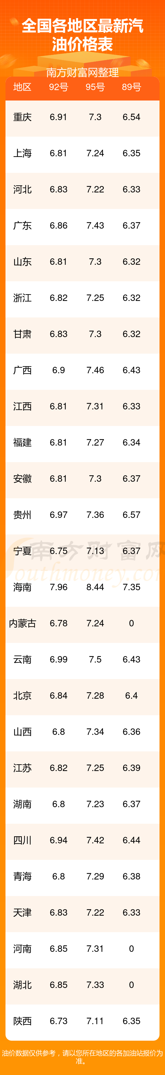 2025年11月9日全國油價調(diào)整及最新汽油價格表