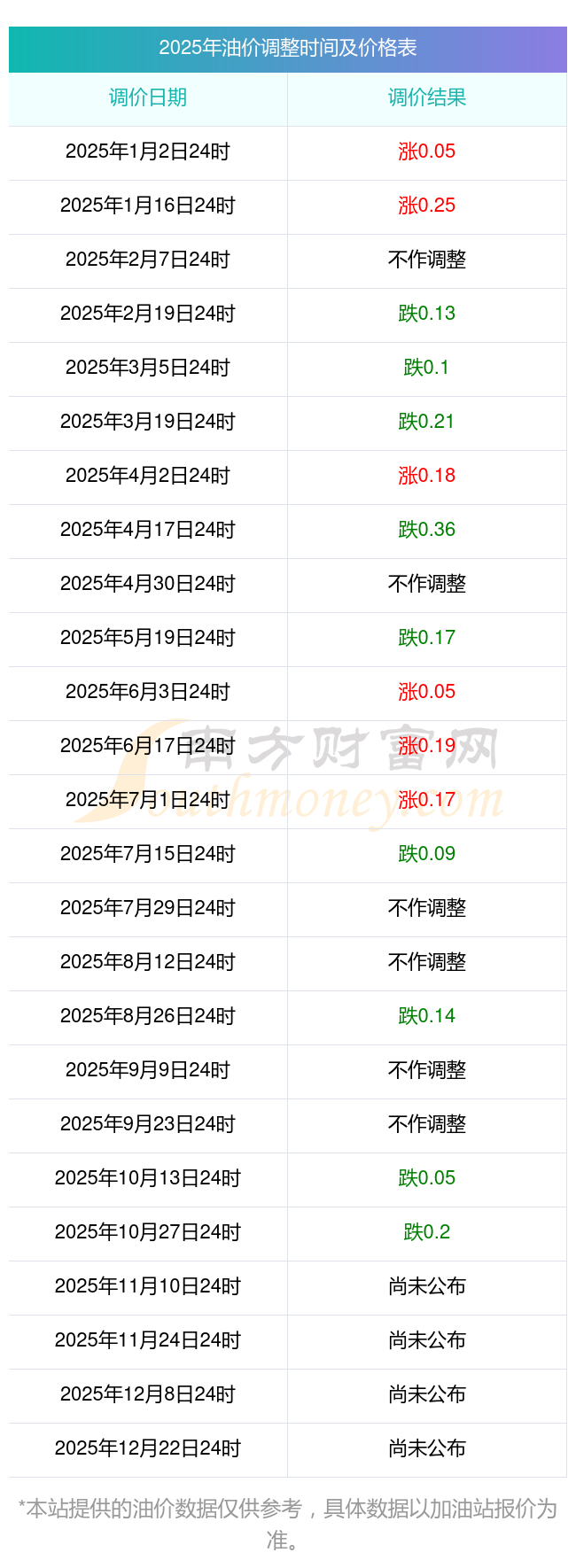 油價調(diào)整最新消息:下一輪油價調(diào)整時間11月10日24時。11月9日青島膠州市汽油柴最新油價是多少?具體每升為:10月28日調(diào)整后,92號汽油為6.81元,下降了0.21元,下降幅達2.99%;95號汽油為7.3元,下降了0.23元,下降幅達3.05%;89號汽油為6.32元,下降了0.2元,下降幅達3.07%;0號柴油為6.4元,下降了0.22元,下降幅達3.32%。