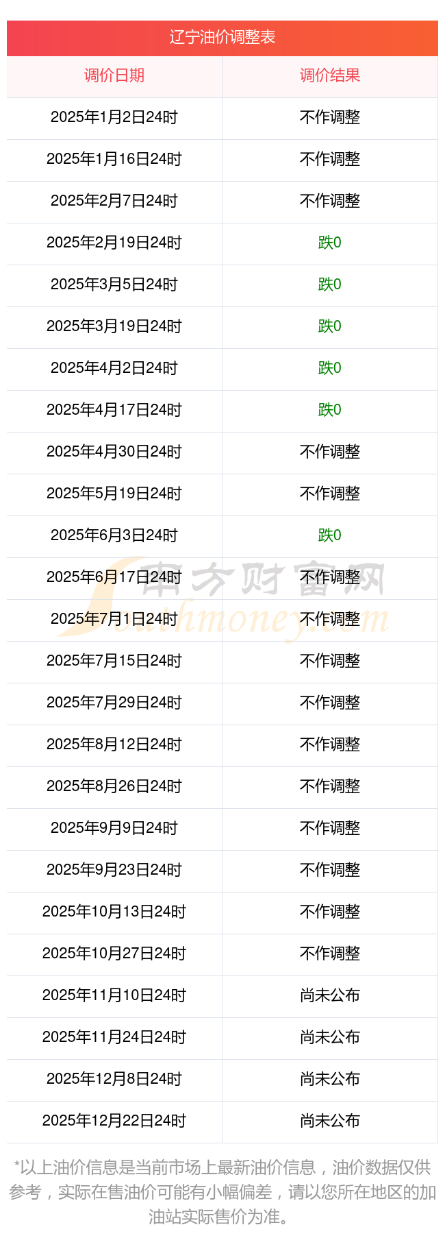 遼寧沈陽(yáng)2025年油價(jià)調(diào)整時(shí)間及最新價(jià)格表