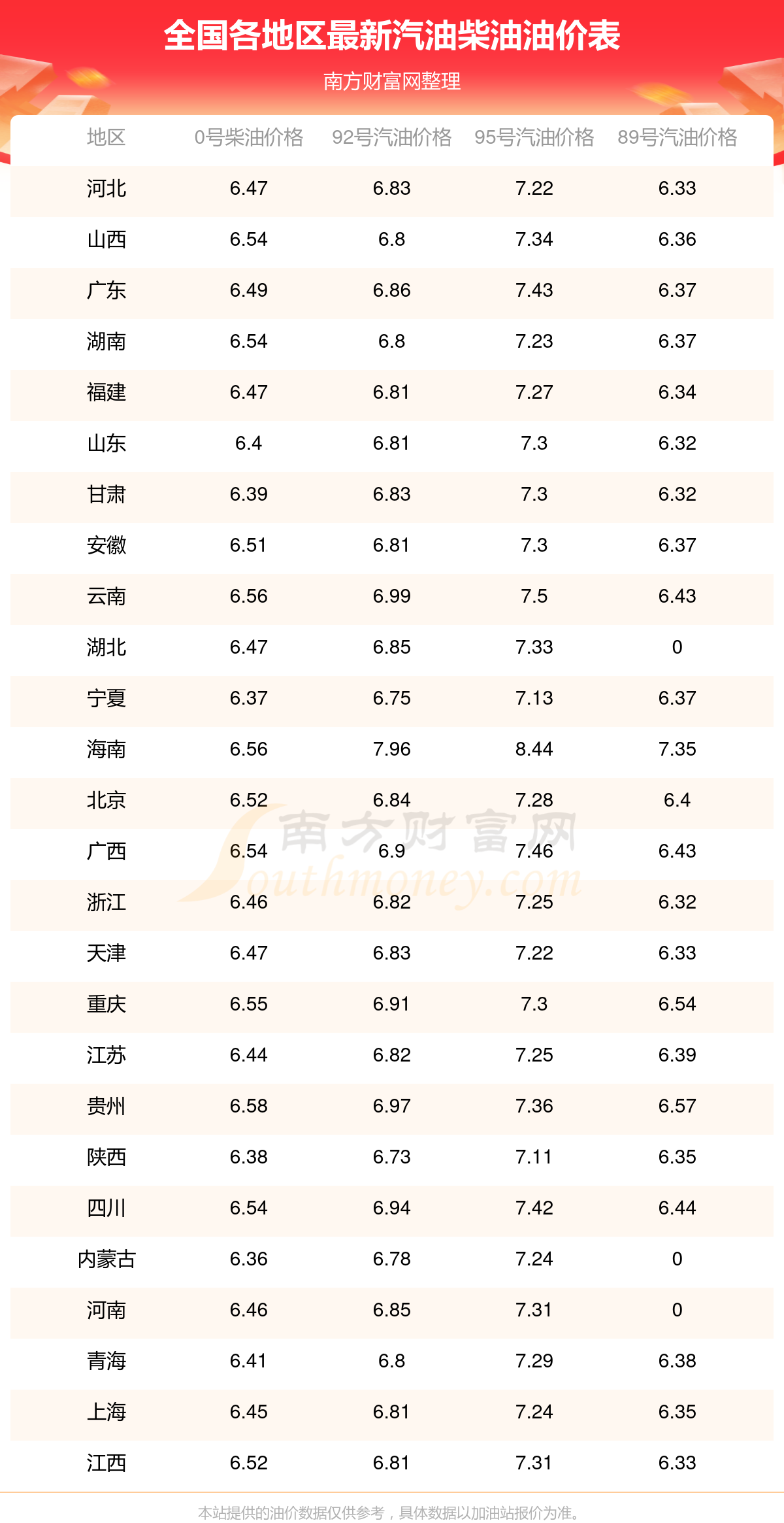 本站提供的油價數(shù)據(jù)僅供參考,具體數(shù)據(jù)以加油站報價為準(zhǔn)。