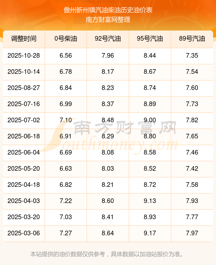 2025年儋州新州鎮(zhèn)油價(jià)調(diào)整時(shí)間表