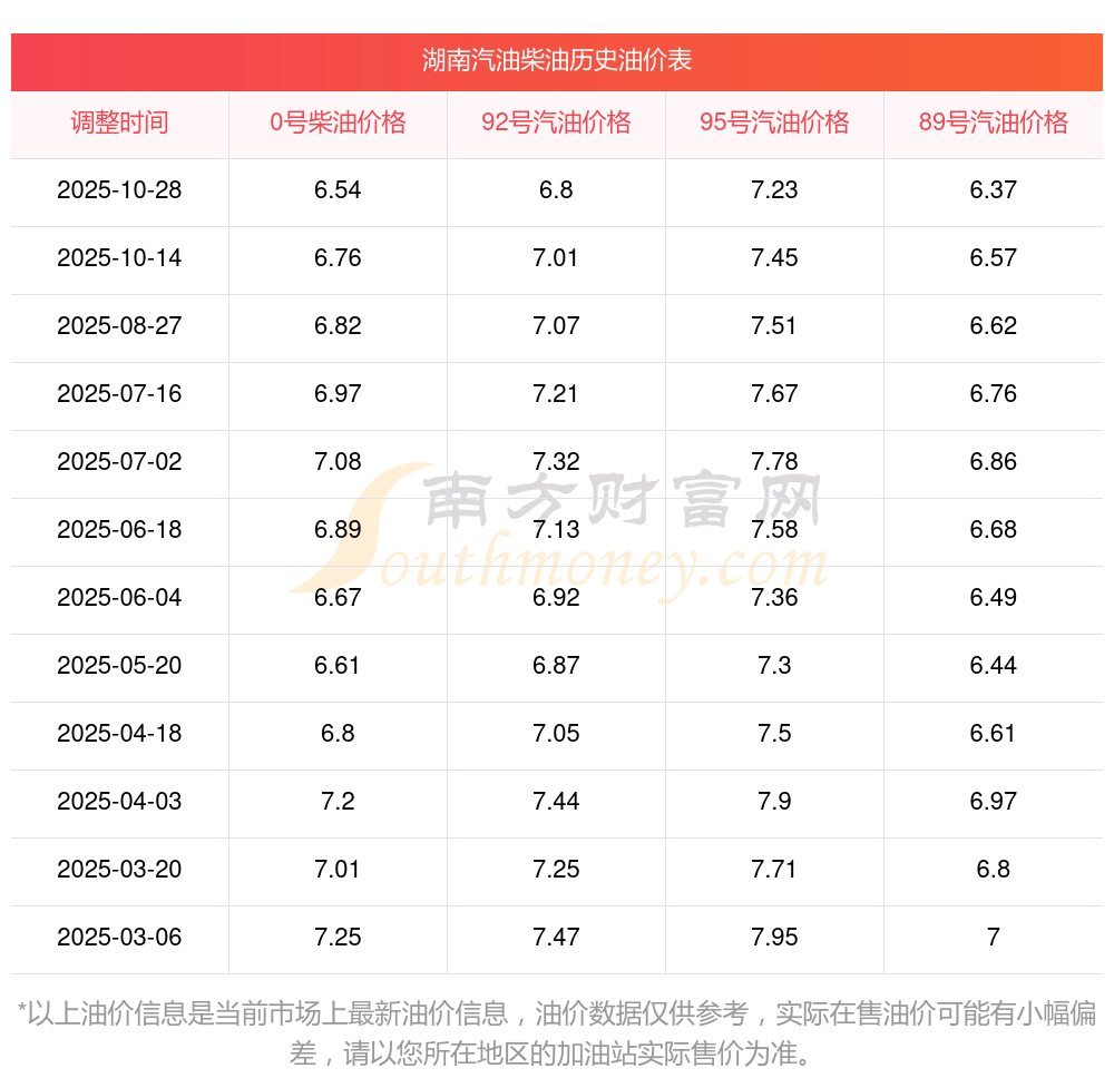 11月9日,湖南92號汽油的價格是6.8元每升,本次的調(diào)整時間為10月28日,對比上次的調(diào)整跌了0.21元,跌3.006%,下次調(diào)整時間為11月10日24時,還有1.54天。