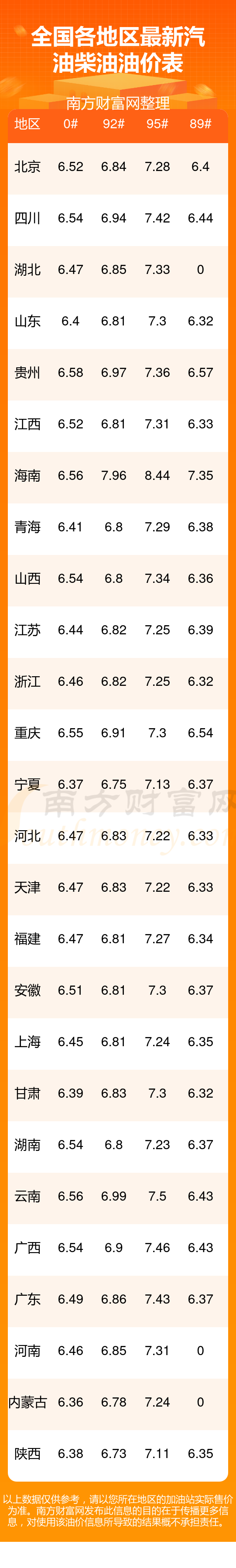 2025年11月9日全國油價(jià)調(diào)整及最新汽油價(jià)格表
