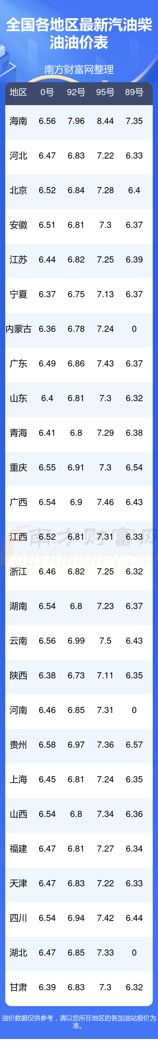 2025年11月9日全國各地汽油價(jià)格表一覽