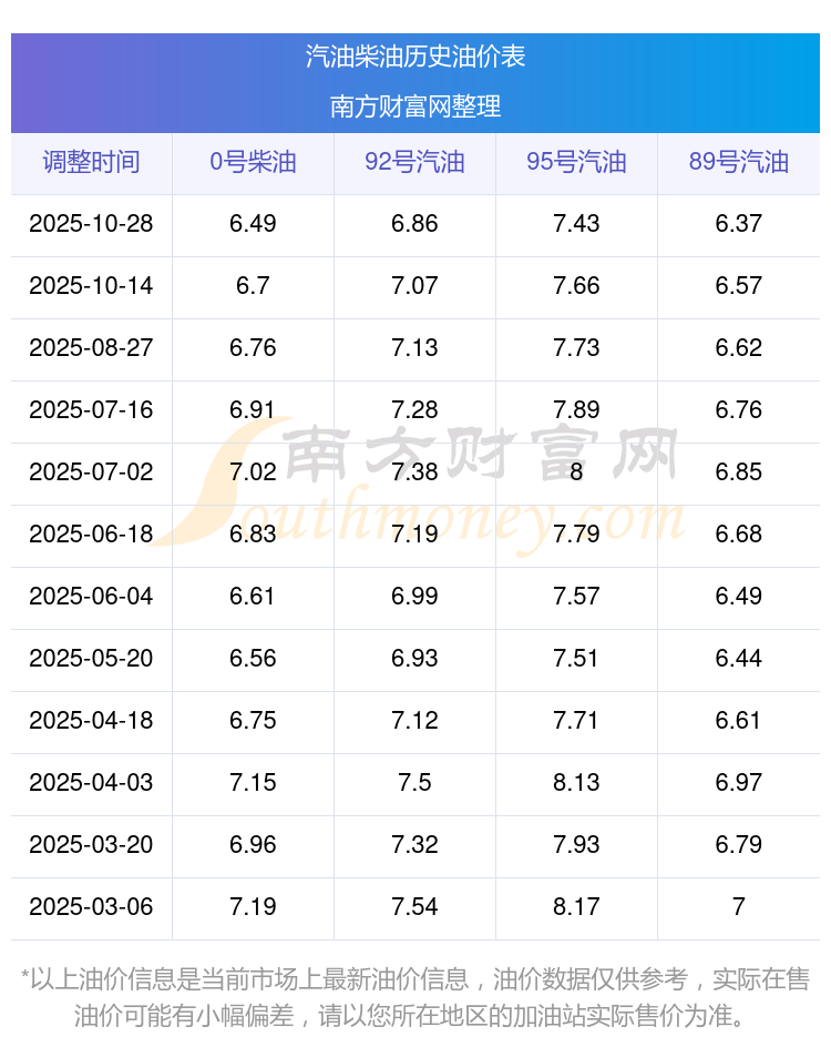 11月9日汕頭92號汽油的最新價格(10月28日調(diào)整后的價格):6.86元/升,相對上次調(diào)整下跌了0.21元。下一輪油價調(diào)整時間11月10日24時,距離現(xiàn)在還有1.54天。