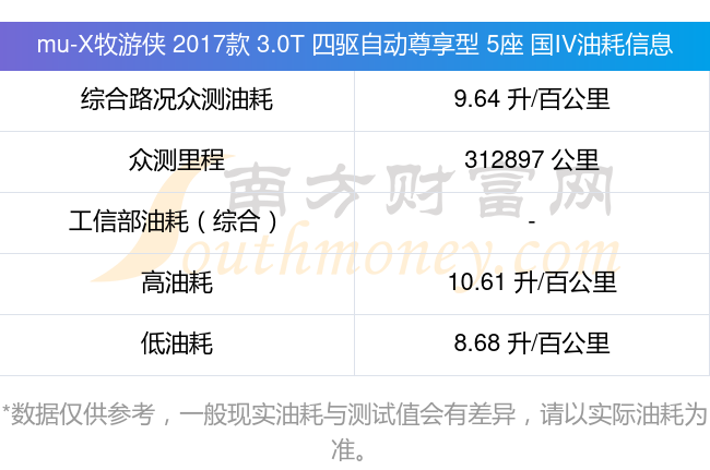 根據(jù)多位車主實測得出數(shù)據(jù),該車型低油耗為8.68L/100km,高油耗為10.61L/100km,綜合路況眾測油耗為9.64L/100km,工信部綜合油耗為-L/100km。