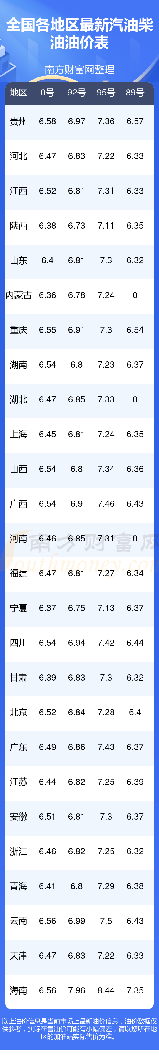 以上油價信息是當(dāng)前市場上最新油價信息,油價數(shù)據(jù)僅供參考,實際在售油價可能有小幅偏差,請以您所在地區(qū)的加油站實際售價為準(zhǔn)。