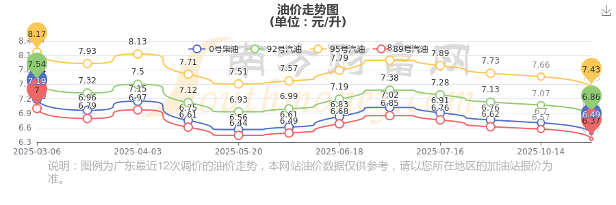 廣東清遠(yuǎn)95號(hào)汽油11月9日最新價(jià)格為7.43元/升,調(diào)整時(shí)間為10月28日,相對(duì)上次調(diào)整時(shí)間10月14日的油價(jià)7.66元每升,下降了0.23元,下降3.003%。下一輪油價(jià)調(diào)整時(shí)間11月10日24時(shí),距離現(xiàn)在還有1.52天。