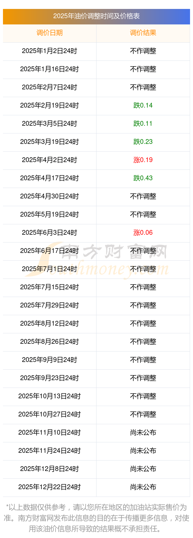 遼寧沈陽2025年汽油價格調(diào)整時間表