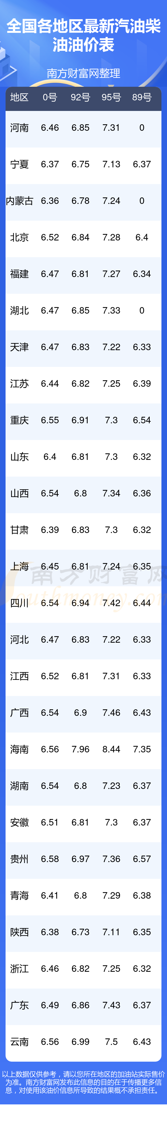 附:最新全國汽油、柴油價(jià)格一覽表