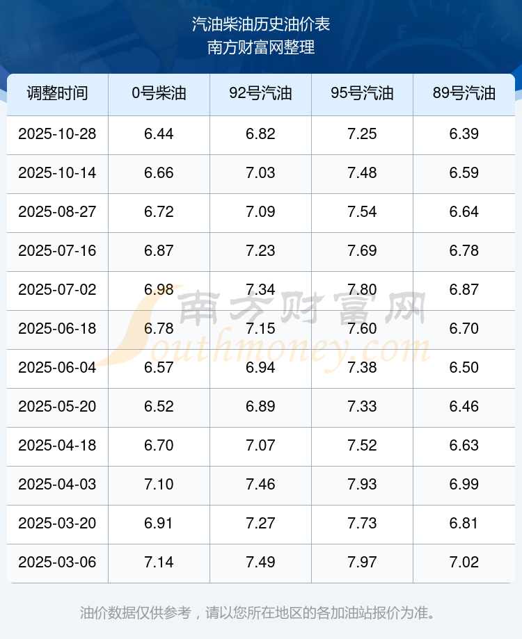 2025年油價(jià)調(diào)價(jià)窗口日期表: