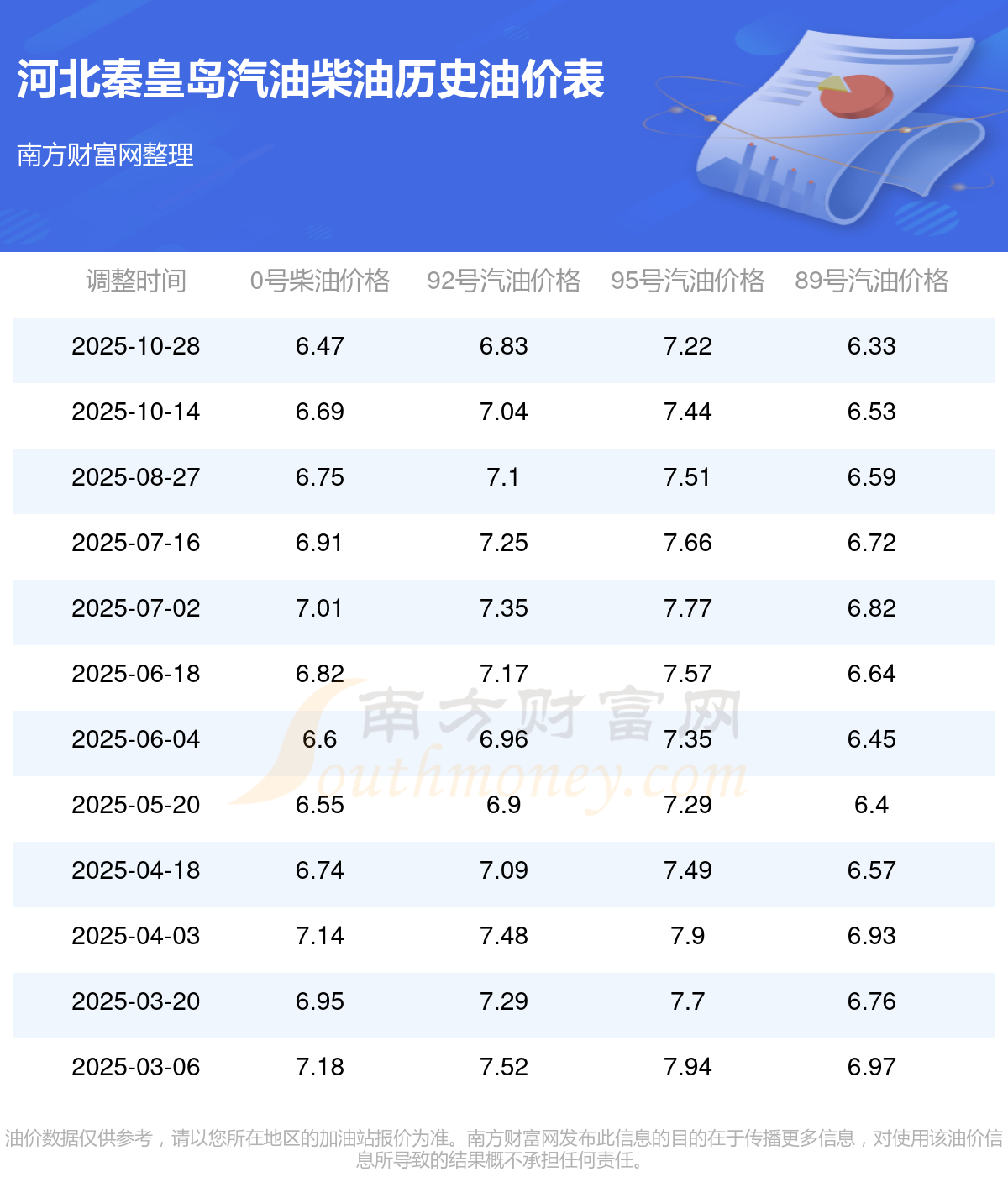 油價(jià)數(shù)據(jù)僅供參考,請(qǐng)以您所在地區(qū)的加油站報(bào)價(jià)為準(zhǔn)。南方財(cái)富網(wǎng)發(fā)布此信息的目的在于傳播更多信息,對(duì)使用該油價(jià)信息所導(dǎo)致的結(jié)果概不承擔(dān)任何責(zé)任。