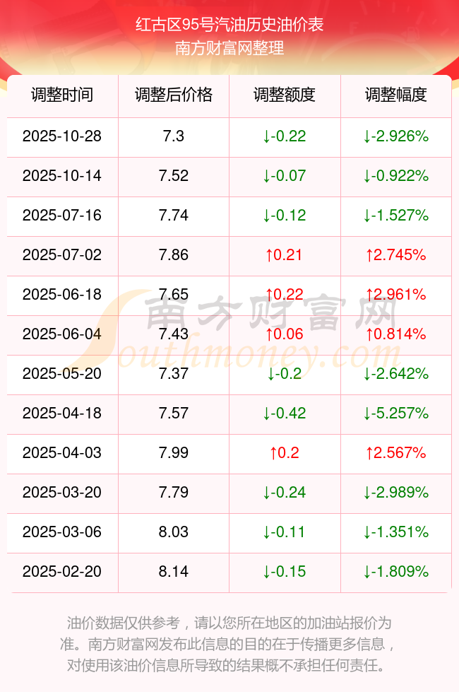 11月9日紅古區(qū)95號汽油歷史油價調(diào)整一覽表